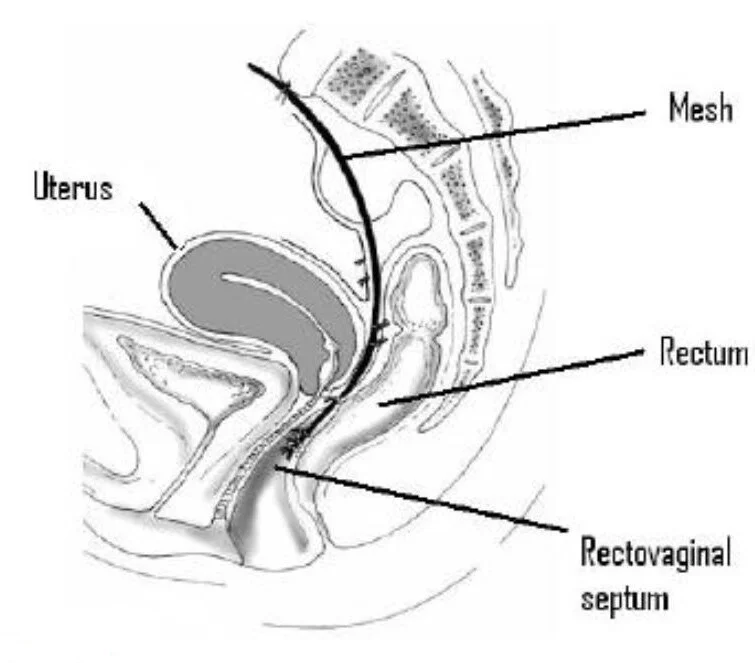Bij vrouwen wordt de vaginakoepel vastgehecht op de mesh ter behandeling van een reeds bestaande vagina-verzakking of preventief hiervoor. Deze ingreep trekt de darm uit het klein bekken, herstelt zo de normale anatomie en voorkomt het opnieuw uitzakken ervan.