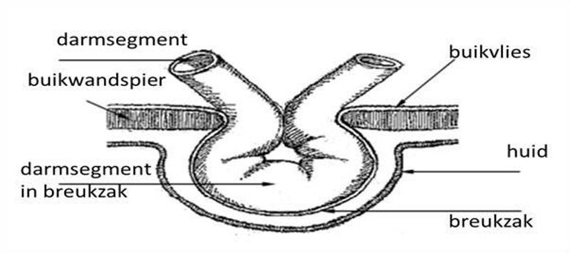 - Een breukpoort: de opening in de spierige buikwand waardoor de breukzak glijdt