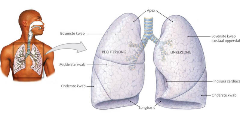 - Onze ademhalingsorganen zijn de longen, deze liggen achter de ribben samen met het hart. Het menselijk lichaam bevat 2 longen, de linker- en rechterlong. Beide longen zijn onderverdeeld in kwabben.